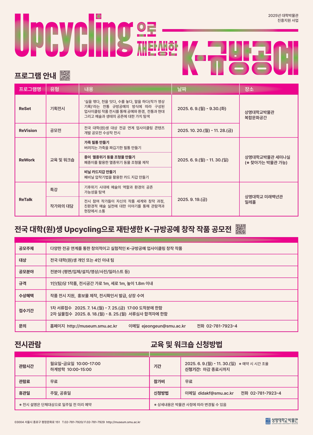 상명 [일반] [박물관] 2025년 대학박물관 진흥지원 사업 <Upcycling으로 재탄생한 K-규방공예> 사업 안내 -